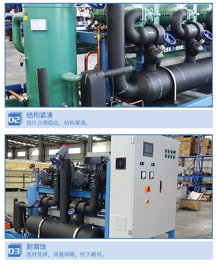 螺杆式并联机组具有易于使用,易于操作,结实可靠的特性,具有电机保护,优劣油位监控,排气温度监控,压缩机反向,过热,过载,喷雾冷却等保护机能,以保证机械收缩在高温,中平易近人低温下均能胜任工作条件,适用于工业制冷应用,可高速稳定地运行,并且具有较高的容错能力。
